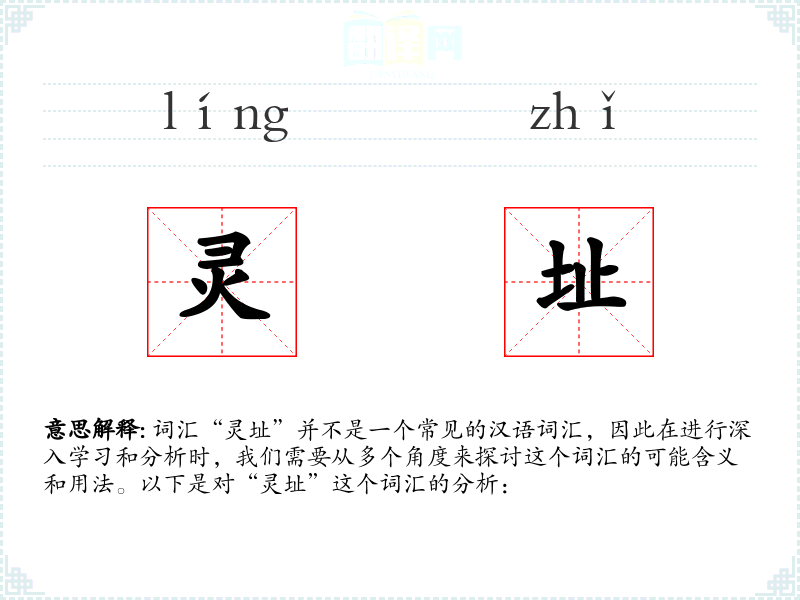 词汇“灵址”并不是一个常见的汉语词汇,因此在进行深入学*和分析时,我们需要从多个角度来探讨这个词汇的可能含义和用法。以下是对“灵址”这个词汇的分析: