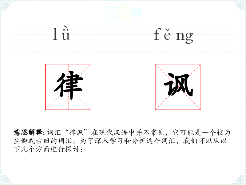 词汇“律讽”在现代汉语中并不常见,它可能是一个较为生僻或古旧的词汇。为了深入学习和分析这个词汇,我们可以从以下几个方面进行探讨: