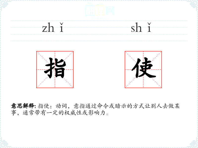 指使:动词,意指通过命令或暗示的方式让别人去做某事,通常带有一定的权威性或影响力。