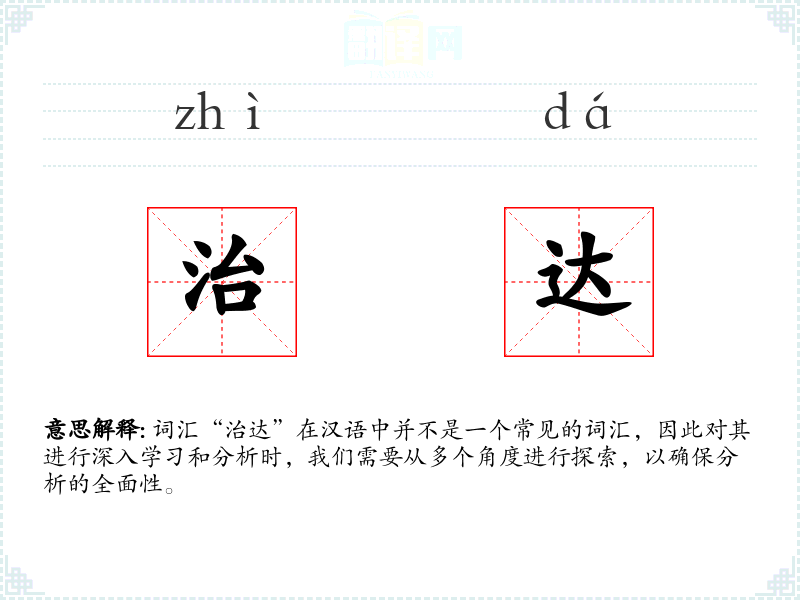 词汇“治达”在汉语中并不是一个常见的词汇,因此对其进行深入学习和分析时,我们需要从多个角度进行探索,以确保分析的全面性。