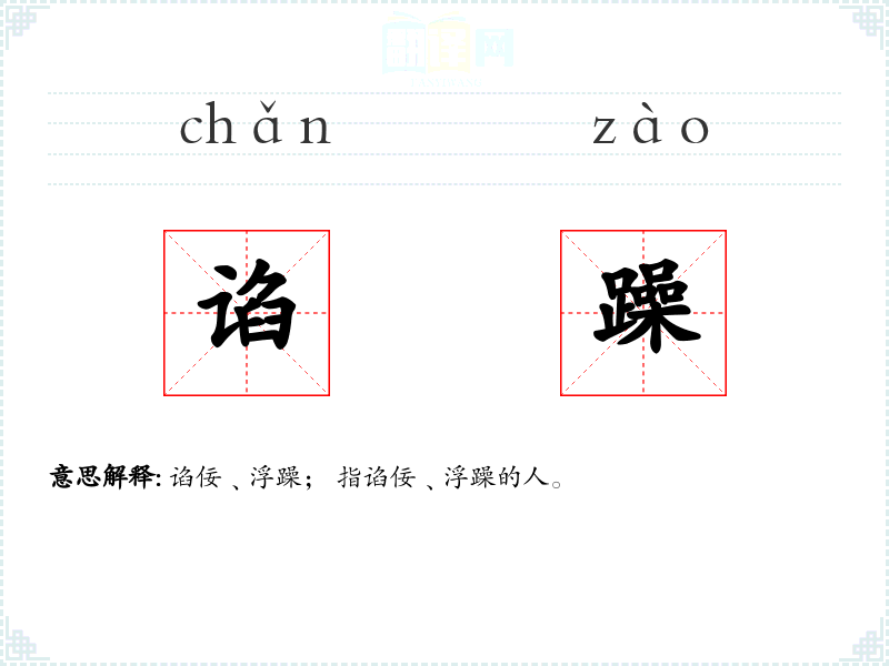谄佞﹑浮躁; 指谄佞﹑浮躁的人。