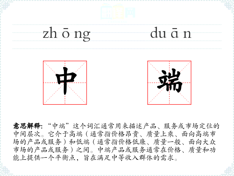 在不同语言中,“中端”可能有不同的表达方式,但其核心含义相似,都是指中间层次的市场定位。