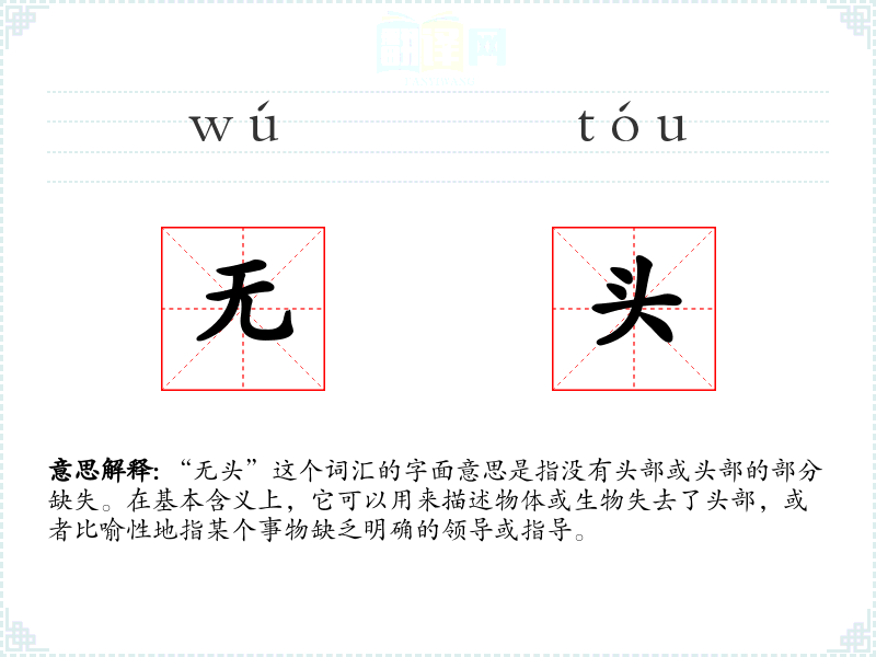 "无头"的意思解释、无头是什么意思由翻译网汉语词典查词提供。
