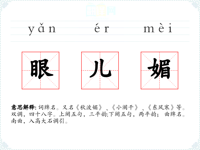 词牌名。又名《秋波媚》﹑《小阑干》﹑《东风寒》等。双调,四十八字。上阕五句,三平韵;下阕五句,两平韵; 曲牌名。南曲,入高大石调引。