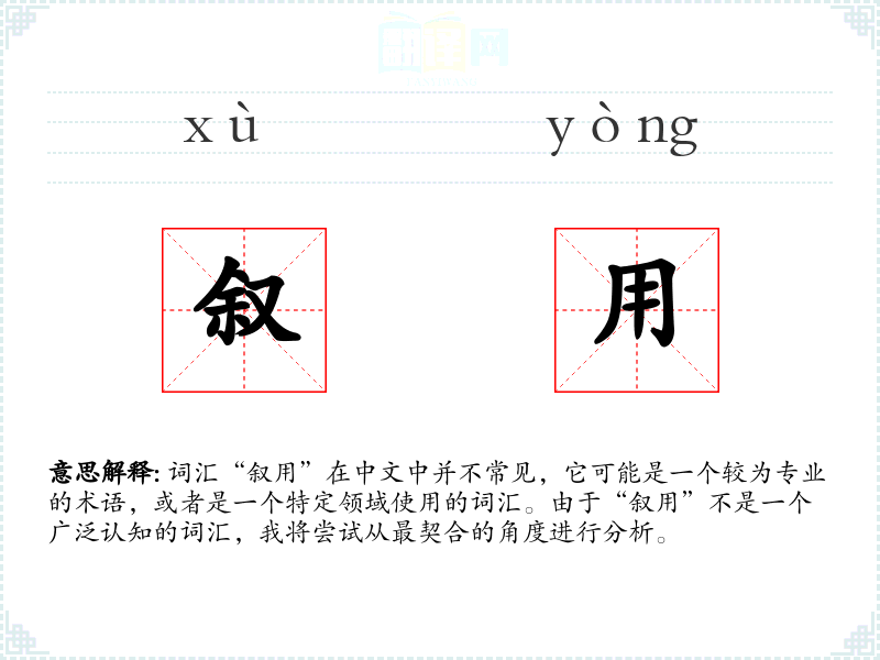 由于“叙用”不是一个常见词汇,它可能在某些专业领域,如文学批评、历史研究或某些技术文档中出现,用于描述对某一对象或概念的详细阐述和实际应用。