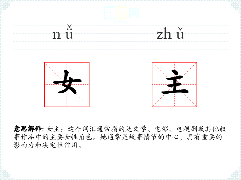 "女主"的意思解释、女主是什么意思由翻译网汉语词典查词提供。