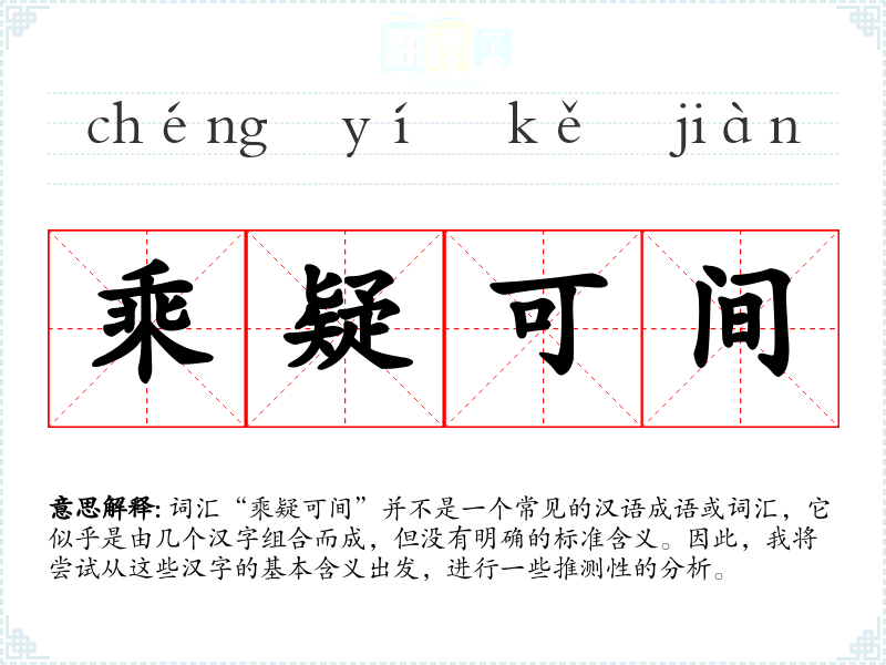 词汇“乘疑可间”并不是一个常见的汉语成语或词汇,它似乎是由几个汉字组合而成,但没有明确的标准含义。因此,我将尝试从这些汉字的基本含义出发,进行一些推测性的分析。