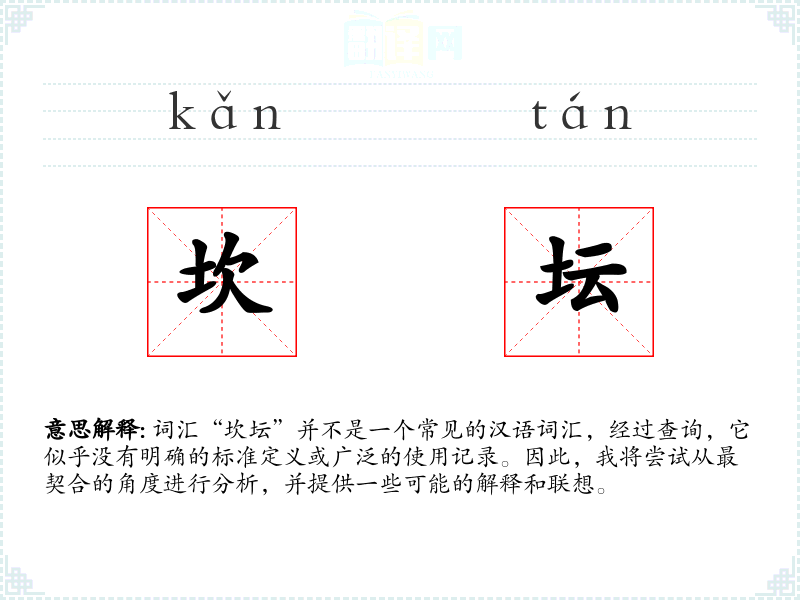 由于“坎坛”不是一个标准词汇,我们可以尝试从字面意思来解释: