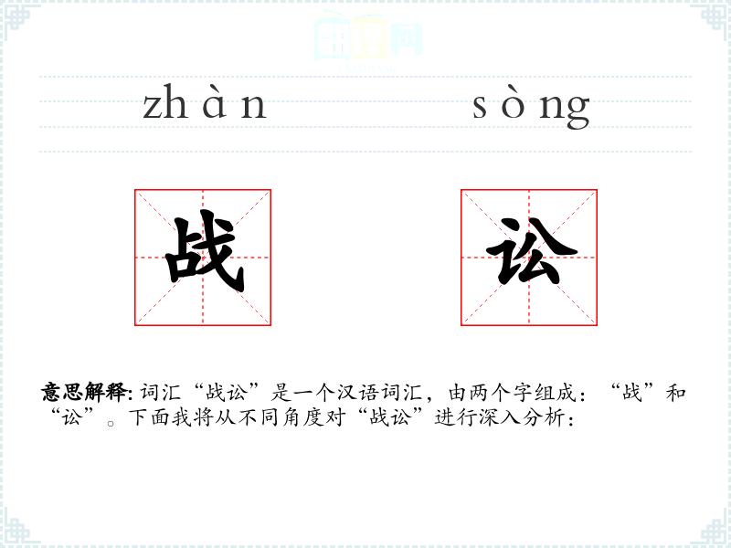 词汇“战讼”是一个汉语词汇,由两个字组成:“战”和“讼”。下面我将从不同角度对“战讼”进行深入分析: