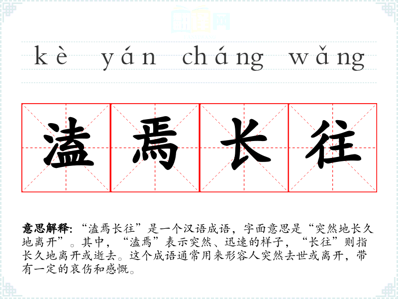 “溘焉长往”是一个汉语成语,字面意思是“突然地长久地离开”。其中,“溘焉”表示突然、迅速的样子,“长往”则指长久地离开或逝去。这个成语通常用来形容人突然去世或离开,带有一定的哀伤和感慨。