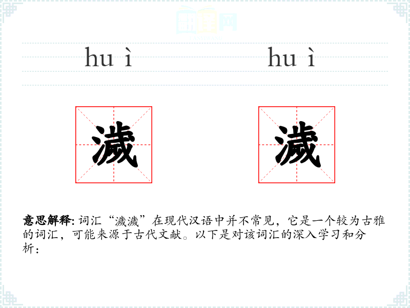 词汇“濊濊”在现代汉语中并不常见,它是一个较为古雅的词汇,可能来源于古代文献。以下是对该词汇的深入学*和分析: