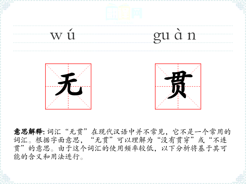 由于“无贯”不是一个国际通用的词汇,它在不同语言或文化中可能没有直接对应的词汇。