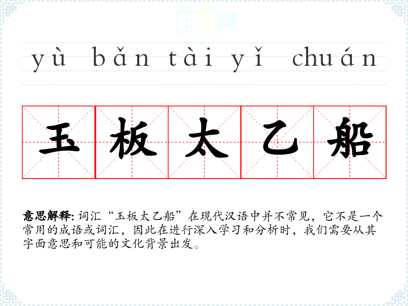 词汇“玉板太乙船”在现代汉语中并不常见,它不是一个常用的成语或词汇,因此在进行深入学*和分析时,我们需要从其字面意思和可能的文化背景出发。