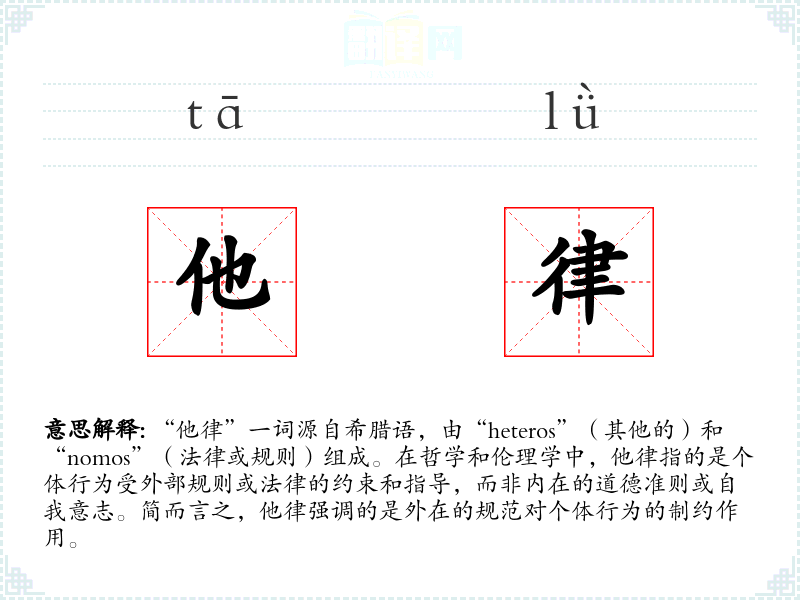 通过对“他律”的深入学,我更加理解了外部规则对个体行为的影响。在语言学和表达中,这个词帮助我更准确地描述那些受外部约束的情境,并促使我在自己的行为中寻找他律和自律的平衡。