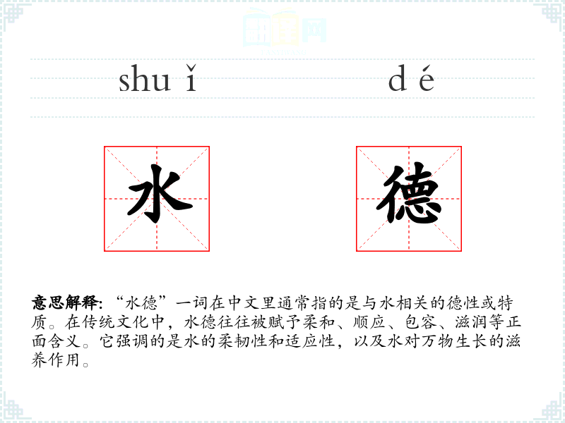 - 口语:在日常对话中,水德可能被用来形容一个人的性格特点,如“她处理问题总是那么圆滑,真有水德”。
