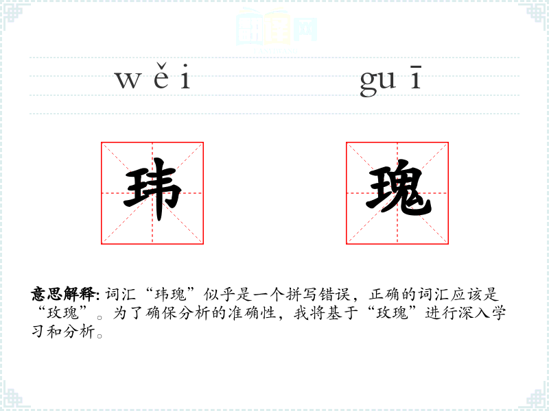 词汇“玮瑰”似乎是一个拼写错误,正确的词汇应该是“玫瑰”。为了确保分析的准确性,我将基于“玫瑰”进行深入学*和分析。
