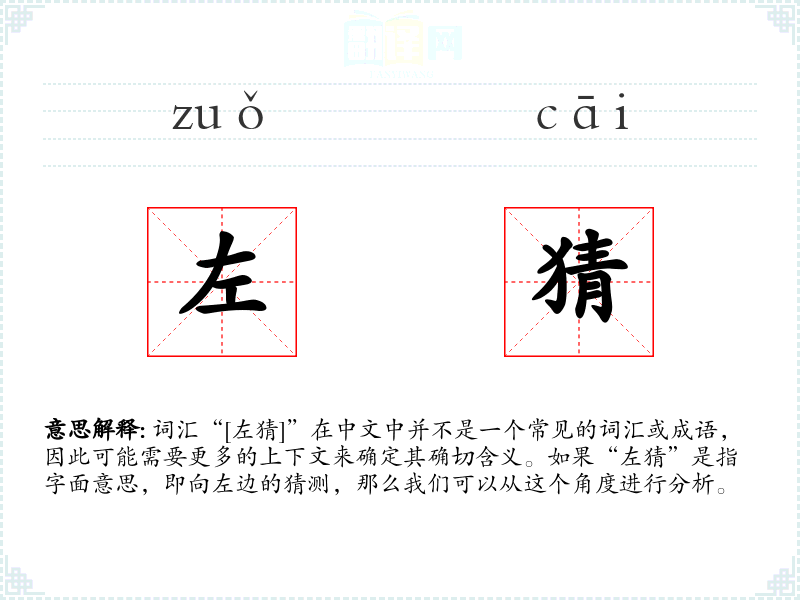 "左猜"的意思解释、左猜是什么意思由翻译网汉语词典查词提供。