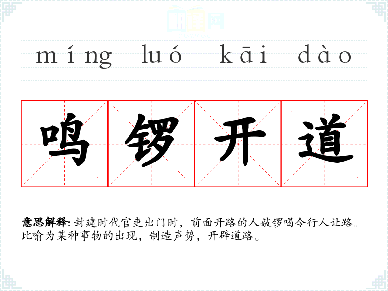 封建时代官吏出门时,前面开路的人敲锣喝令行人让路。比喻为某种事物的出现,制造声势,开辟道路。