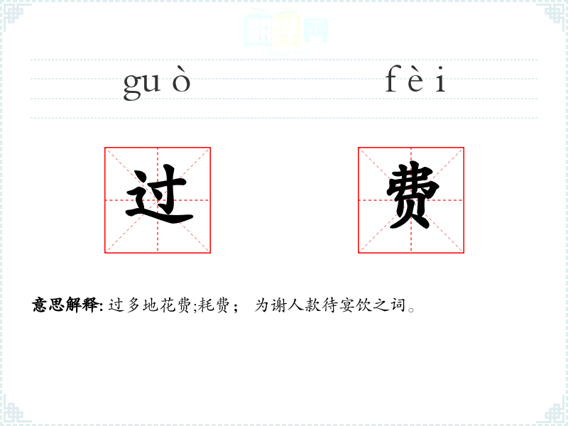 过多地花费;耗费; 为谢人款待宴饮之词。