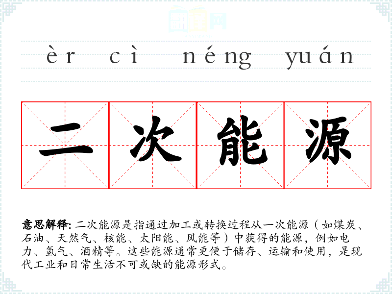 "二次能源"的意思解释、二次能源是什么意思由翻译网汉语词典查词提供。