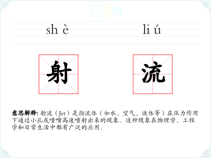 射流一词源于古汉语,字面意思为“射出的流体”。在现代汉语中,其含义和用法基本保持不变,但在不同领域有更具体的应用和解释。