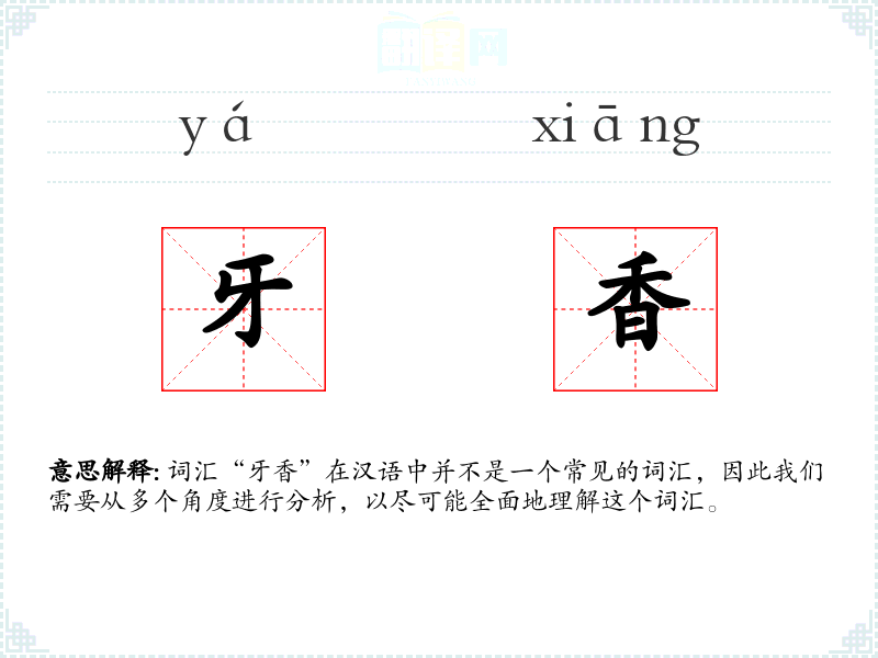 词汇“牙香”在汉语中并不是一个常见的词汇,因此我们需要从多个角度进行分析,以尽可能全面地理解这个词汇。