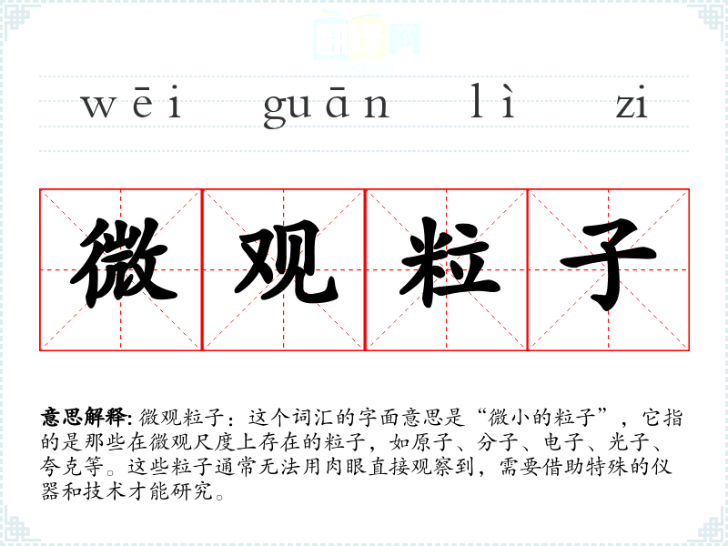 “微观粒子”是一个科学术语,但它也反映了人类对微小但重要事物的认识和探索。在语言学习和表达中,理解和运用这个词汇可以帮助我们更准确地描述和理解科学现象,同时也丰富了我们的词汇和思维方式。