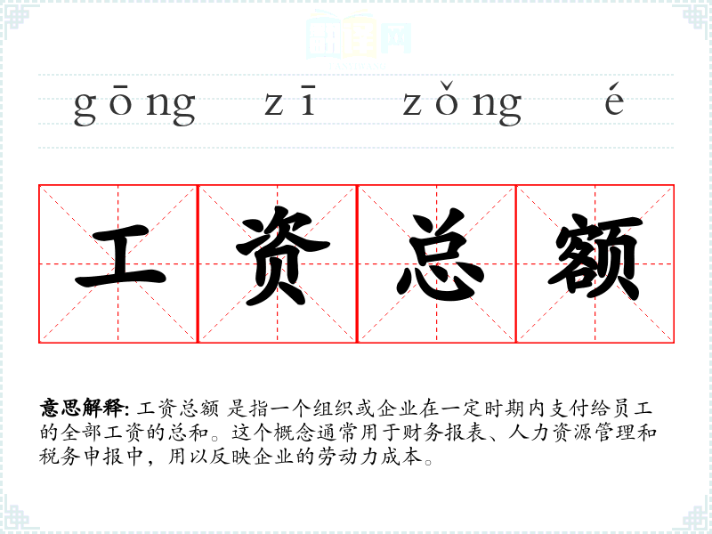 工资总额 这个词源于对“工资”和“总额”两个词的组合。在现代汉语中,“工资”指的是员工因工作而获得的报酬,“总额”则是指总数或总和。随着经济的发展和财务管理的精细化,这个词在商业和财务领域中变得越来越重要。