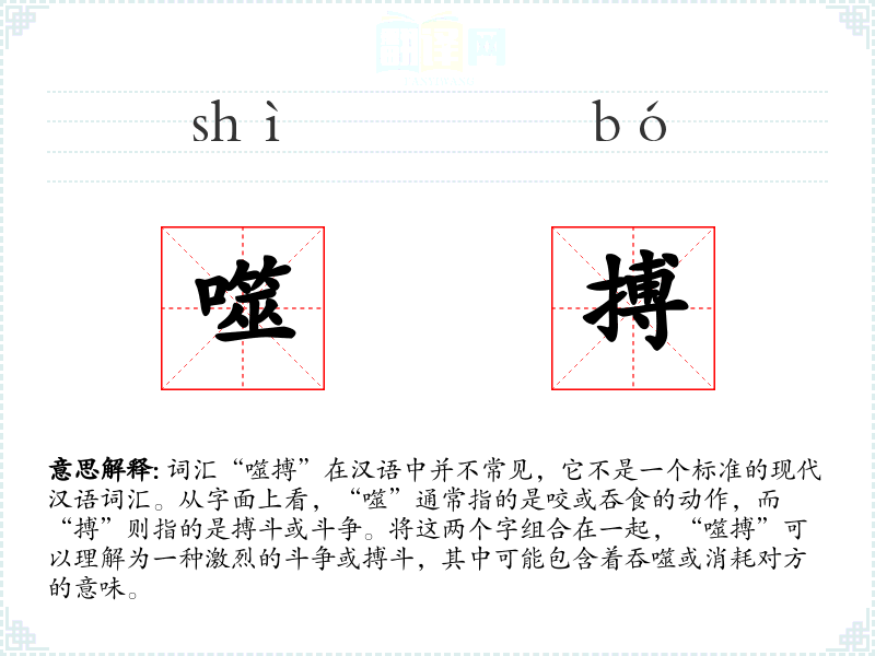 在其他语言中,可能没有直接对应“噬搏”的词汇,但类似的表达可以通过组合不同的词汇来实现,如英语中的“fierce struggle”或“vicious fight”。