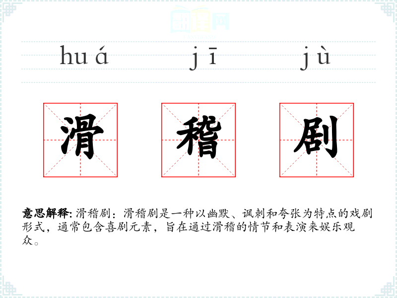- 专业领域:在戏剧和表演艺术领域,滑稽剧是一种特定的戏剧类型,有其独特的表演风格和剧本结构。