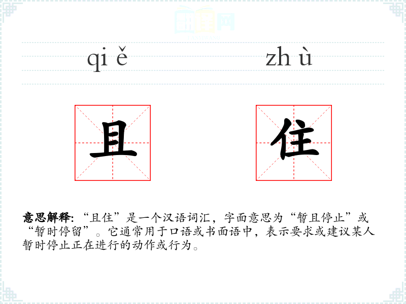 “且住”是一个富有表现力的词汇,它在不同的语境中都能有效地传达暂停或等待的意图。了解和掌握这个词汇,对于提高语言表达的丰富性和准确性具有重要意义。