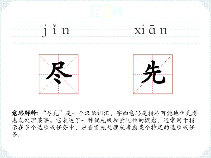 通过对“尽先”这个词汇的深入学,我更加理解了它在不同语境中的应用和重要性。在语言学和表达中,掌握这样的词汇有助于提高沟通的效率和准确性。