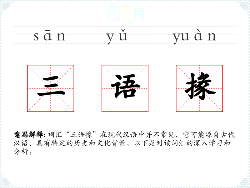 词汇“三语掾”在现代汉语中并不常见,它可能源自古代汉语,具有特定的历史和文化背景。以下是对该词汇的深入学*和分析: