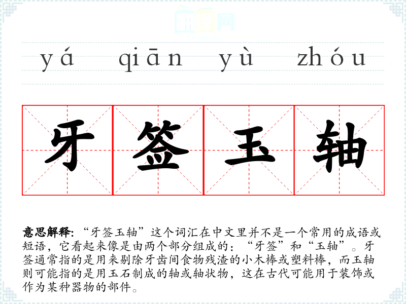 在其他文化中,可能没有直接对应“牙签玉轴”的词汇,但如果涉及到类似的物品,可能会用其他材料或形式来表达。