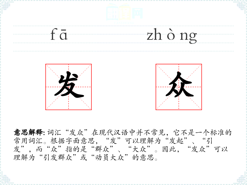 “发众”的字面意思和基本含义是引发或动员大众参与某项活动或支持某个观点。