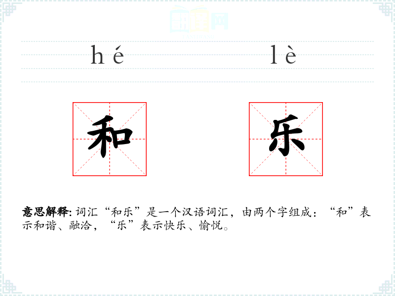 “和乐”字面意思是指和谐快乐,通常用来形容人际关系融洽、气氛愉快的状态。