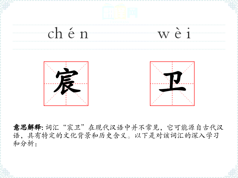 词汇“宸卫”在现代汉语中并不常见,它可能源自古代汉语,具有特定的文化背景和历史含义。以下是对该词汇的深入学*和分析:
