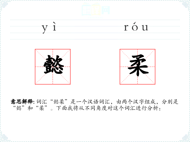 词汇“懿柔”是一个汉语词汇,由两个汉字组成,分别是“懿”和“柔”。下面我将从不同角度对这个词汇进行分析: