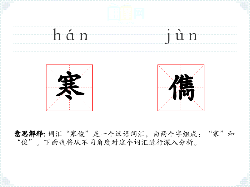 词汇“寒俊”是一个汉语词汇,由两个字组成:“寒”和“俊”。下面我将从不同角度对这个词汇进行深入分析。