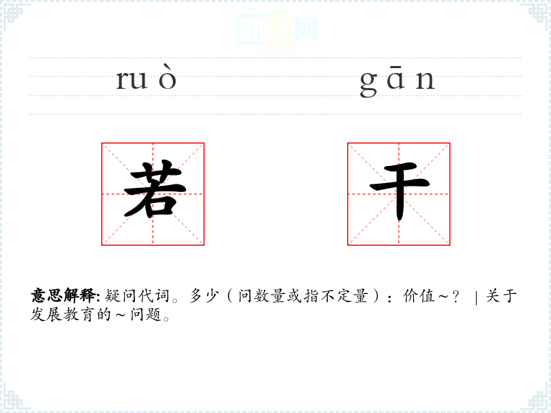 疑问代词。多少(问数量或指不定量):价值~?|关于发展教育的~问题。