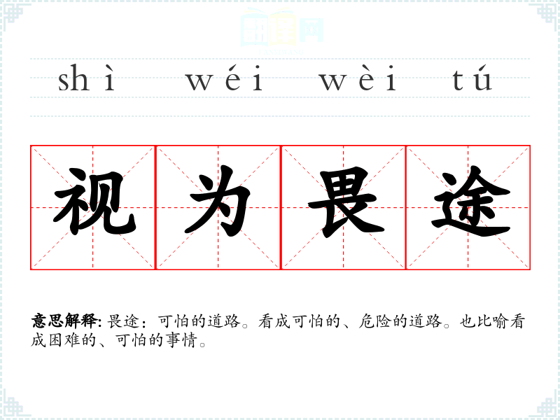 畏途:可怕的道路。看成可怕的、危险的道路。也比喻看成困难的、可怕的事情。