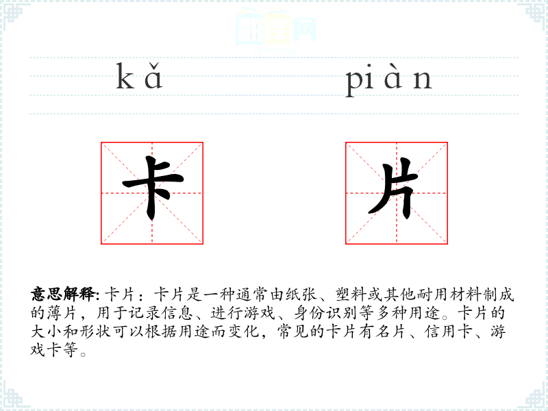 "卡片"的意思解释、卡片是什么意思由翻译网汉语词典查词提供。