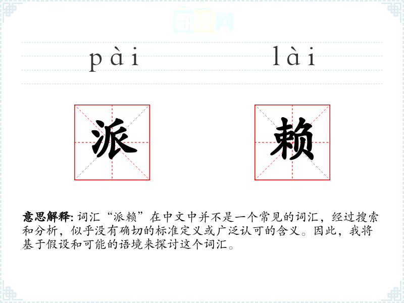 由于“派赖”不是一个标准词汇,我们无法提供一个确切的基本定义。它可能是某个方言、网络用语或者是某个特定社群中的术语。
