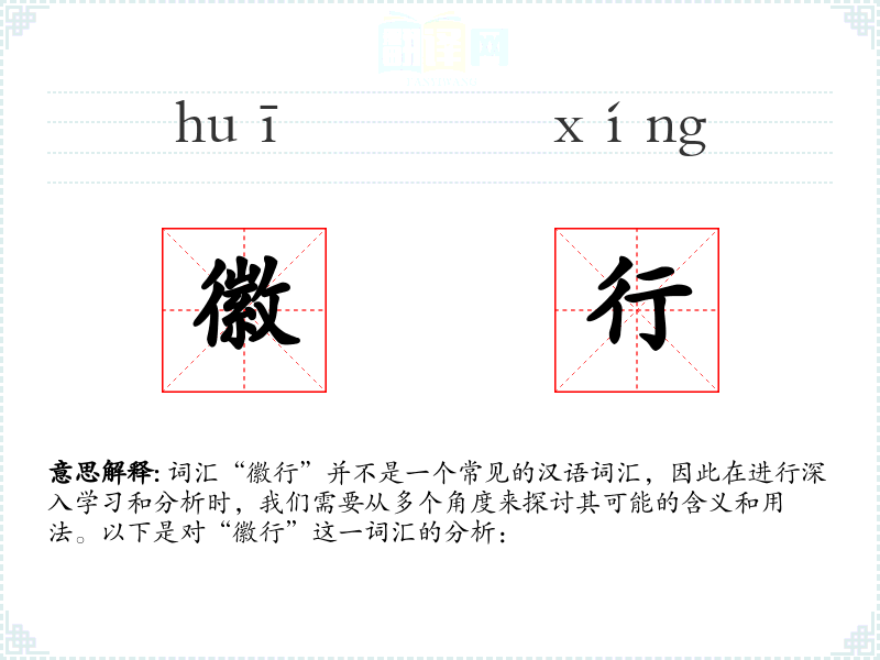 词汇“徽行”并不是一个常见的汉语词汇,因此在进行深入学习和分析时,我们需要从多个角度来探讨其可能的含义和用法。以下是对“徽行”这一词汇的分析: