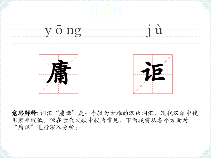 词汇“庸讵”是一个较为古雅的汉语词汇,现代汉语中使用频率较低,但在古代文献中较为常见。下面我将从各个方面对“庸讵”进行深入分析: