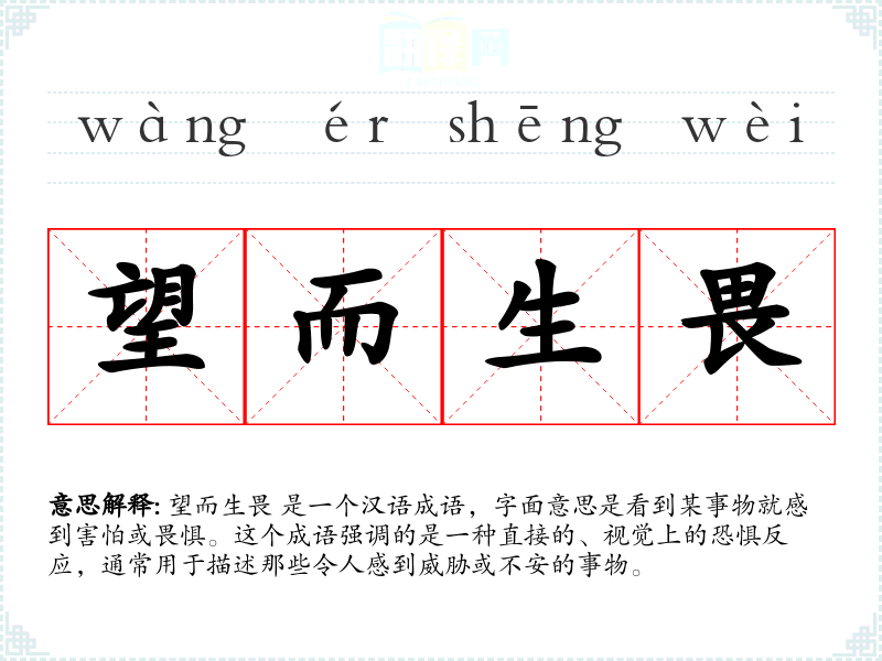 望而生畏 是一个汉语成语,字面意思是看到某事物就感到害怕或畏惧。这个成语强调的是一种直接的、视觉上的恐惧反应,通常用于描述那些令人感到威胁或不安的事物。