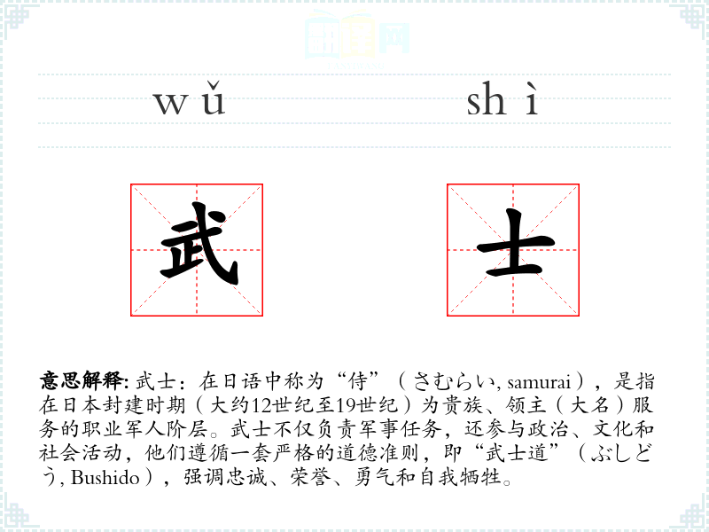 "武士"的意思解释、武士是什么意思由翻译网汉语词典查词提供。
