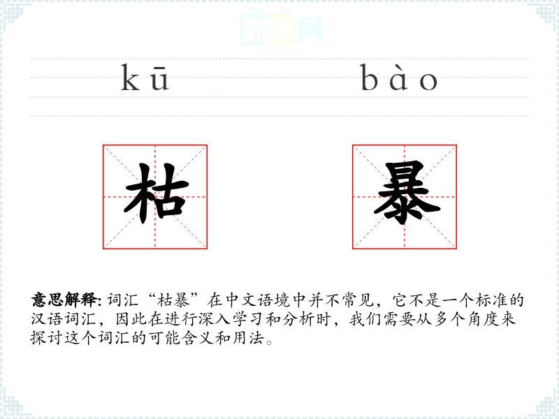 词汇“枯暴”在中文语境中并不常见,它不是一个标准的汉语词汇,因此在进行深入学习和分析时,我们需要从多个角度来探讨这个词汇的可能含义和用法。