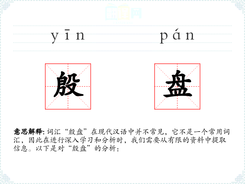 词汇“殷盘”在现代汉语中并不常见,它不是一个常用词汇,因此在进行深入学*和分析时,我们需要从有限的资料中提取信息。以下是对“殷盘”的分析: