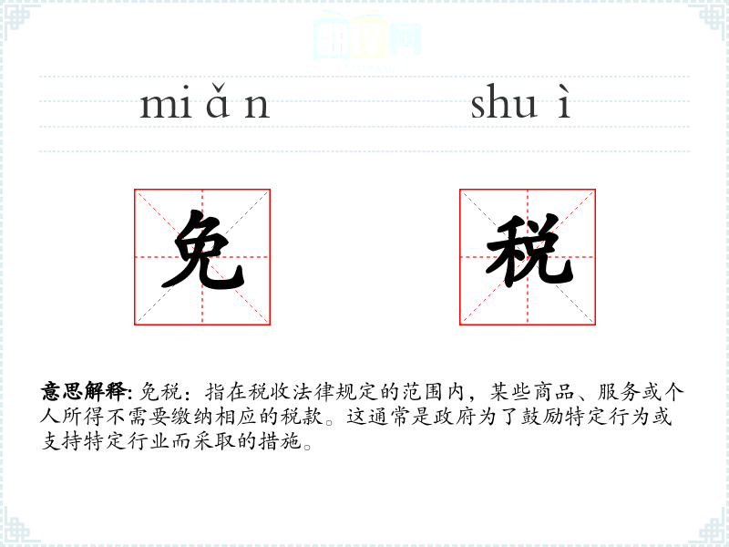 "免税"的意思解释、免税是什么意思由翻译网汉语词典查词提供。